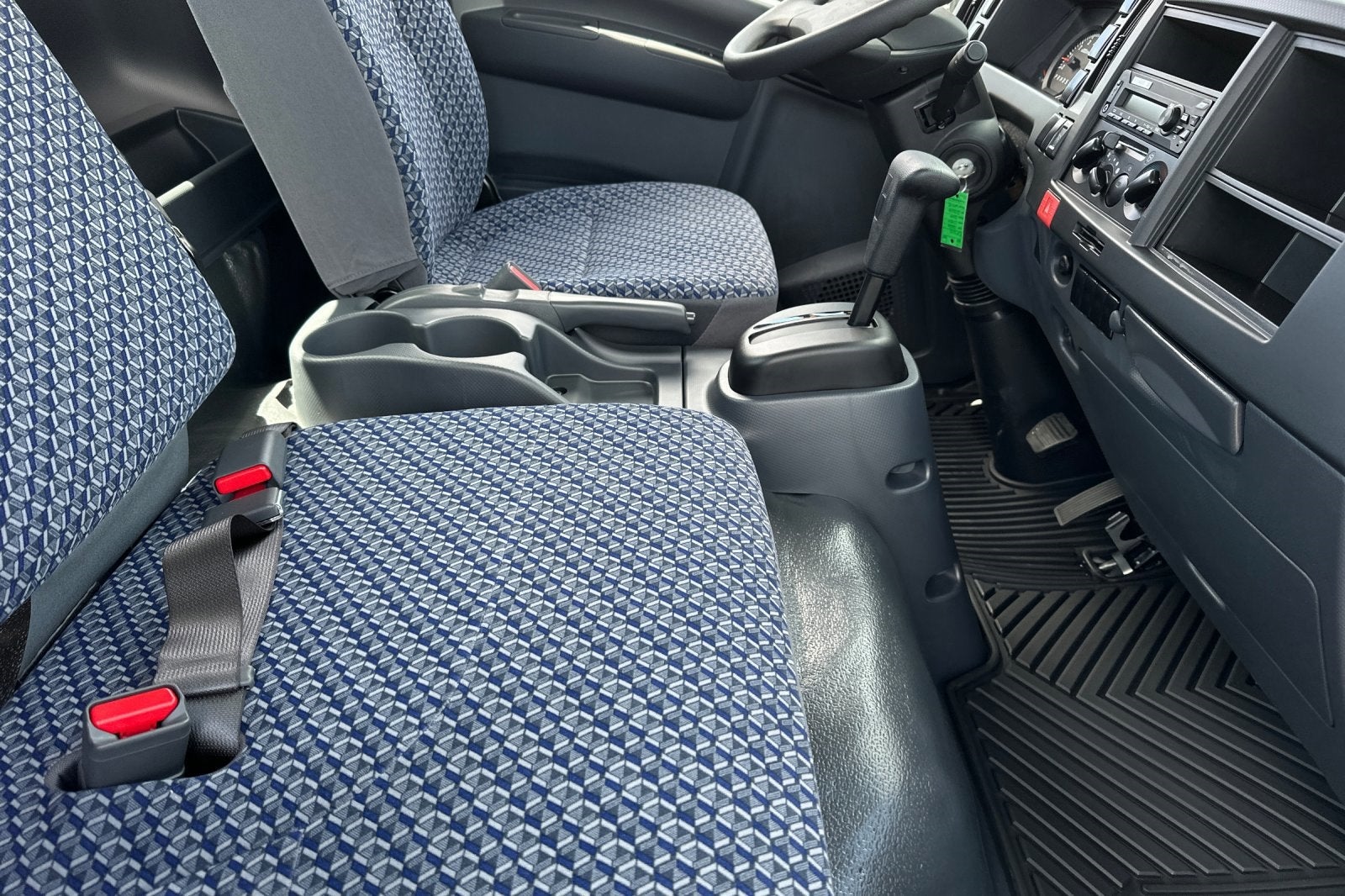 - Seat, front high back bucket driver and passenger tricot cloth covered reclining high back driver seat with single two-occupant fold down passenger seat (STD)