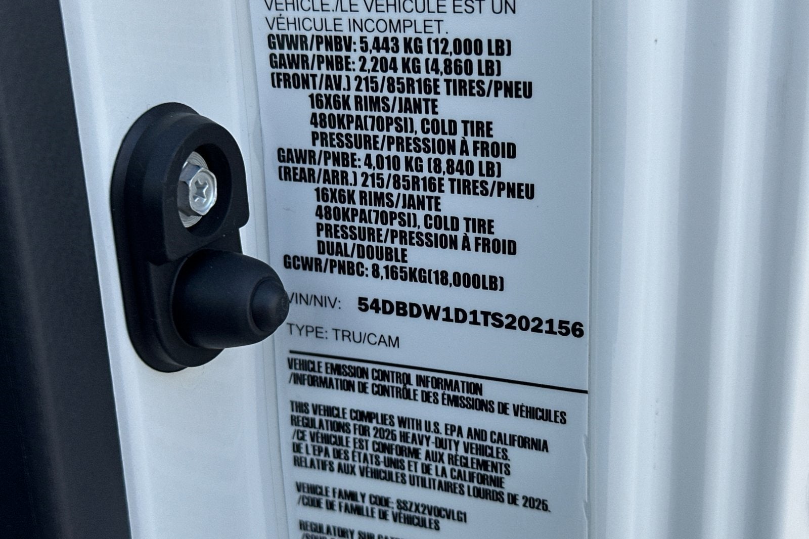 - GVWR, 12,000 lbs. (5443 kg)